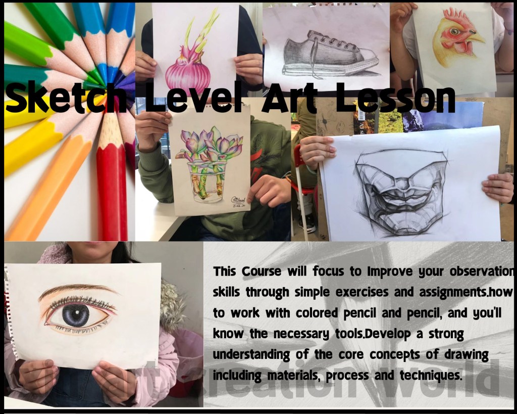 – The correct way of coloring and combining them in a sketch with colored pencils, and at last sketching the very beautiful and simple models.